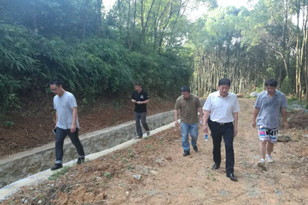 圖為工作人員查看黃土嶺山體排水施工成果