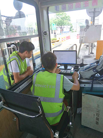 圖為工作人員對天線聯調測試 8日9日中午1點30左右,正是一天中最熱的時間,天線廠家帶著設備來到收費所,中心人員便放棄午休時間和早已在外廣場待命登高車駕駛員一起,協助廠家技術人員更換離地面6米余高的RSU天線盒。由于天線盒上方沒有安裝任何遮擋設備,長年日曬雨淋導致上方固定螺栓都出現生銹打滑,拆卸難度徒增,不到十分鐘,我們工作人員便濕透了全身,但大家還是咬咬牙,為盡快恢復車道正常行駛,保證車道便捷暢通而繼續埋頭苦干。在經過近一個小時努力,終于將新的天線盒成功安裝,最后經過聯調測試,恢復了車輛正常讀卡。 通過對新天線盒“上任”后數天觀察,發現該ETC車道讀卡失敗率明顯下降,車輛通過率達到了99.7%。如此一來,大大提高了車輛通行效率,距打造“智慧高速”目標又邁進了一步。