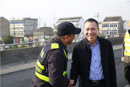 在施工現場,張建平對路面專項養護綜合督查組馮濟爐和葉榮江兩位同志說,你們就是公司的眼睛,要把握施工現場動態,把好施工質量和安全關;你們是公司的手,要督促工程保質保量快速推進。這是一次確立科學養護理念、鍛煉管養人才,展示公司硬實力的機會??粗@兩位老同志被陽光曬得黝黑的臉龐,張建平緊緊地握住他們的手,連聲對他們說:“你們辛苦了,你們辛苦了!”