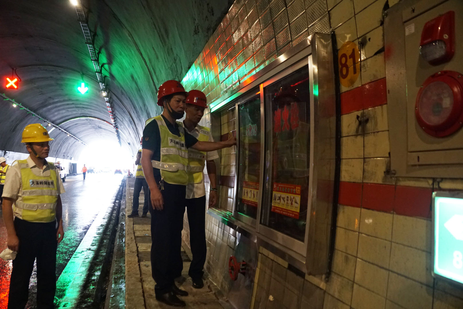 驗收小組人員佩戴安全帽,身著反光背心,從寧向隧道北洞口開始,以徒步方式開展驗收。每次途經改建之地,他們便仔細檢測,著重對機電設備安裝調試效果、消防設施配備、緊急電話安裝、蓋板更換、瓷磚修復及清洗情況等進行仔細排查驗收。