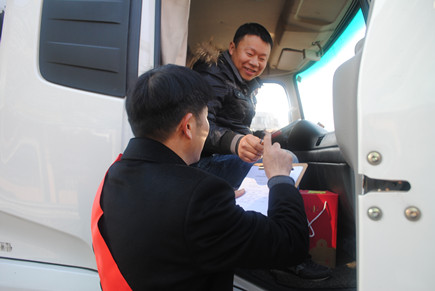圖為向司機(jī)開(kāi)展?jié)M意度調(diào)查