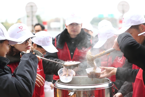 圖為志愿者準備送溫暖的食物 活動前夕,臺州收費所食堂提前購入薯粉、桂圓、紅棗、紅糖等食材,自制成散粉糊和姜茶,將煮好的食材統一裝進了保溫桶中,避免冷卻。 此次活動,志愿者們共送出200多份散粉糊和紅糖姜茶,發放100多份貨車非現金支付優惠宣傳單。臺州收費所在提升窗口服務品質的同時,不斷延伸服務,樹立了良好的社會形象。 楊雅芬