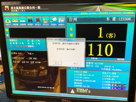 93日凌晨149分,臺州收費所接監控中心電話,需要在出口攔截一輛黑色越野車。