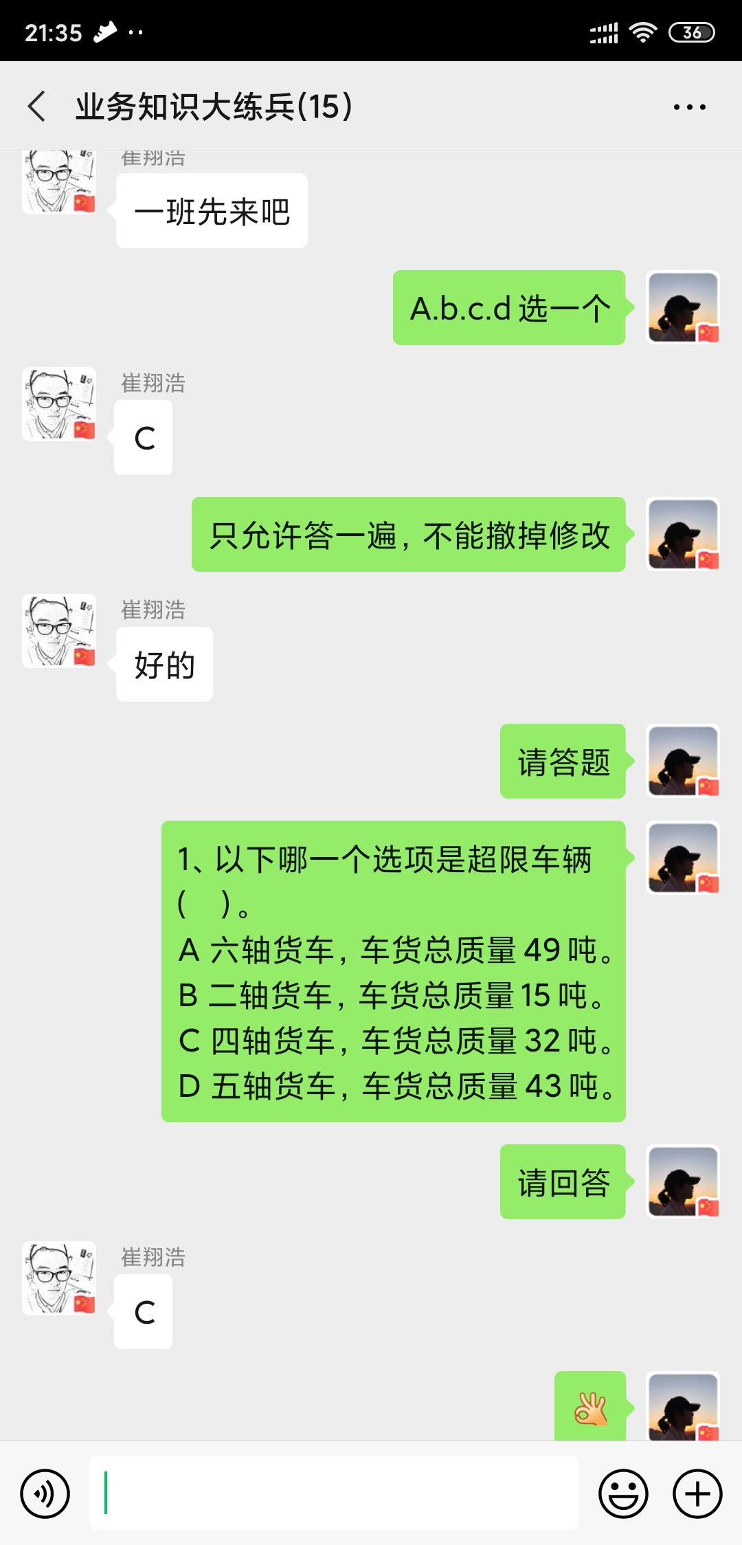 本次業務知識大練兵活動根據取消省界收費站后收費政策及最新ETC綠農車等業務內容,包括必答題和搶答題,每班同等數量必答題,只允許單次有效答案;搶答題按回答正確順序取最快一名,計入個人分數及班組總分,最后計分多者為勝。