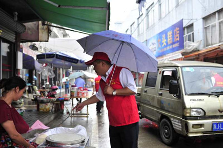 由部分非當(dāng)班黨員,青年團(tuán)員組成的第一支志愿小分隊(duì),趕赴沙埠鎮(zhèn),與沙埠鎮(zhèn)鎮(zhèn)政府一起開(kāi)展創(chuàng)建全國(guó)文明城市的宣傳活動(dòng)。小分隊(duì)統(tǒng)一身著印有的 “臺(tái)州高速臺(tái)州南收費(fèi)所志愿服務(wù)隊(duì)”的紅色馬甲,在沙埠鎮(zhèn)有關(guān)同志的陪同之下,冒雨沿街分發(fā)創(chuàng)建全國(guó)文明城市的宣傳資料,并逐一耐心講解創(chuàng)建工作的有關(guān)注意事項(xiàng)。