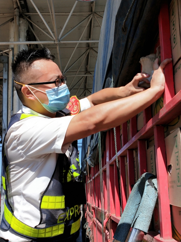 檢查綠農車,遇到攀爬驗貨時,車輛欄桿因高溫炙烤至少在四五十度以上,臺州南收費所班長周冬子笑著說:“現在的車欄桿都‘辣手’了,腳底板也像踩了‘風火輪’。” 話音還未落,只見他蹭蹭幾下,已然爬上貨車,一邊檢查貨物一邊用袖子蹭掉臉上豆大的汗珠,被曬得黝黑發紅的皮膚在烈日下格外醒目。綠農車開走后,他顧不上滿身汗水,拿起了掃把開始打掃灑落在車道上的綠農產品。因為他知道,這些灑落的農產品,如不及時清理,在太陽曝曬后將會更加刺鼻,影響收費站的形象。 熱浪滾滾,卷不走收費員們工作的熱情;夏日炎炎,燃不盡收費員們堅守的意志。他們用執著在高溫下書寫愛崗敬業,用責任和擔當保障著高速的平安暢通。 項丹穎