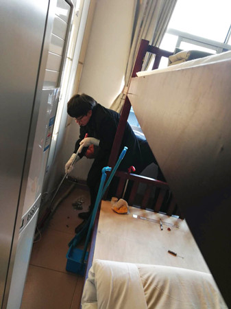 兩個多月以來,因新宿舍的施工建設,以及宿舍后方下水道的整修,導致目標打掃區域積累了很多灰塵和水泥漬,加上接連一個多月的停水,給清潔工作帶來了諸多困難和不便,但是大家還是一一克服。 在此次活動中,副班長汪洋起到了很好的帶頭作用,臟活累活他都搶在了前頭,用實際行動鼓舞了班上每一位員工,大家以積極飽滿的精神狀態,對宿舍的衛生死角進行了認真細致地打掃清理。 蔣弓是剛進公司不久的新員工,他在“疊被能手”林王鍵的熱心幫助下,迅速地掌握了整理床單的技巧和方法,為集體宿舍的整潔美觀積極出力。 在這寒冬臘月的冬天里,在塵土飛揚的環境中,在大流量的收費工作結束后,大家團結一致,分工明確,密切合作,以三小時的高效率完成了生活區域的打掃,為營造一個干凈舒適的家園做出了自己的努力。 李嬌嬌
