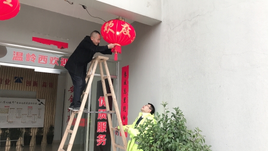 春節將至,為弘揚傳統春節文化,給每一位在所員工營造一個喜慶、潔凈、祥和的站所風貌,溫嶺西收費站精心籌劃、細致安排,凝聚力量扮靚站所,組織員工貼春聯,懸掛一串串紅燈籠,迎接新年的到來。