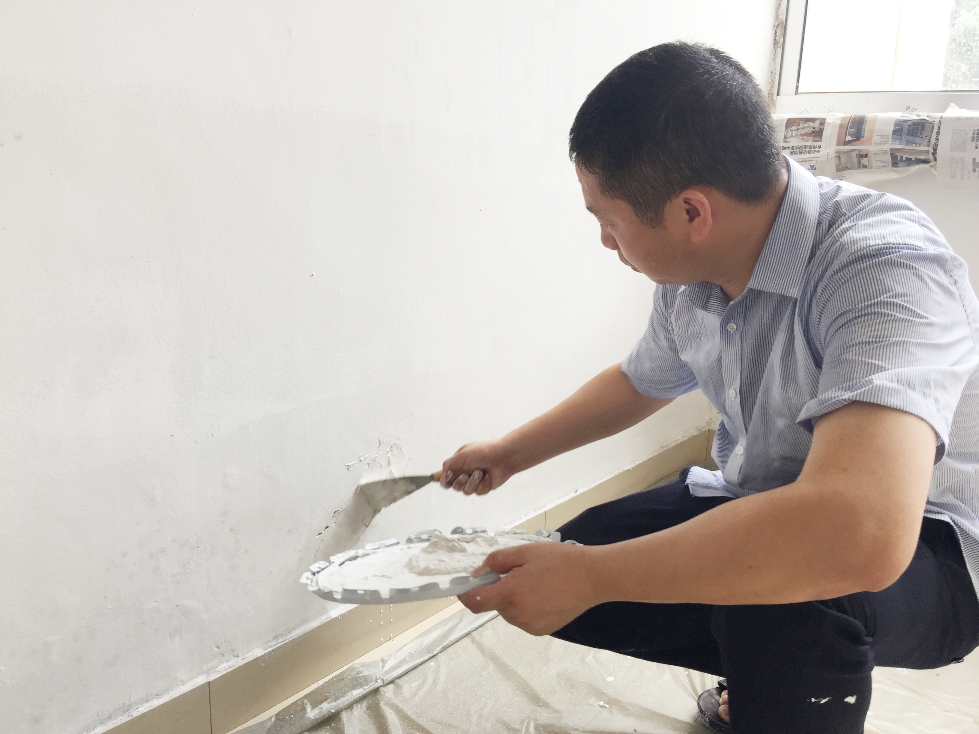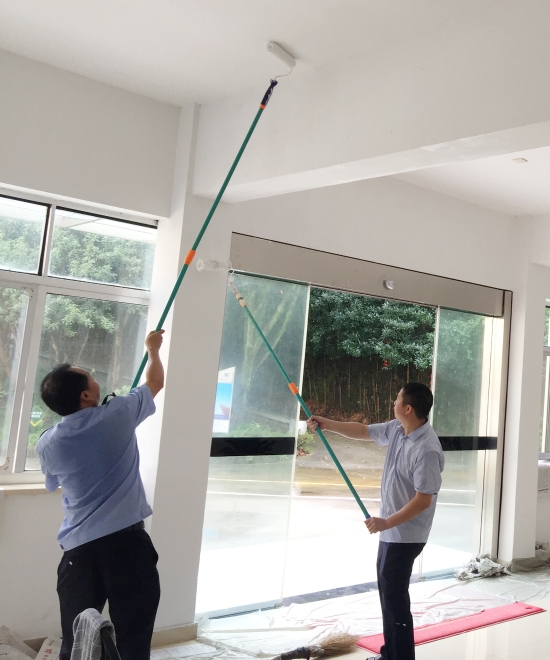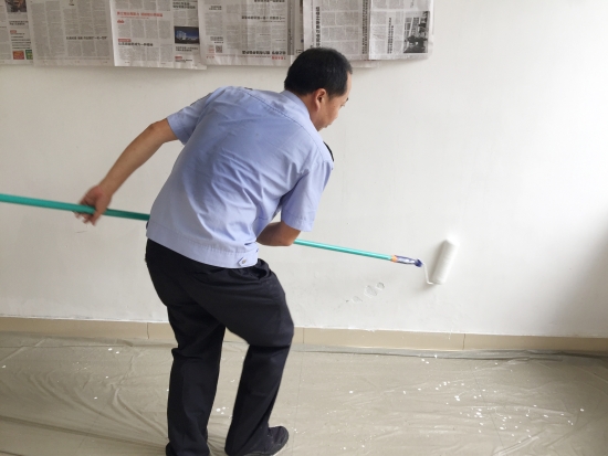 圖為“粉刷匠”粉刷現(xiàn)場 現(xiàn)場,工具備齊后,大家捋起袖子開始動工。家里正在裝修的林通,有著豐富的粉刷經(jīng)驗(yàn),指導(dǎo)大家如何將墻體粉刷得平整又美觀。分工明確后,有的拿起粉刷棒,有的攪拌涂料,有的鋪墊報紙及塑料紙,有的清理刷墻后殘留在地面的垃圾。整個勞動過程中,各個動作麻利,干勁十足。粉刷是個技術(shù)活,更是個力氣活,只見浸滿涂料的刷子在墻上揮舞著,個個汗如雨下,卻都顧不得休息,在大家的齊心協(xié)力下,原本一片灰不溜湫的墻壁變得雪白光潔。 這次義務(wù)勞動,不僅美化了站所環(huán)境,營造出廉潔的工作氛圍,增強(qiáng)了員工的凝聚力和向心力,更增加了全體員工對公司的一份熱愛。 林玲