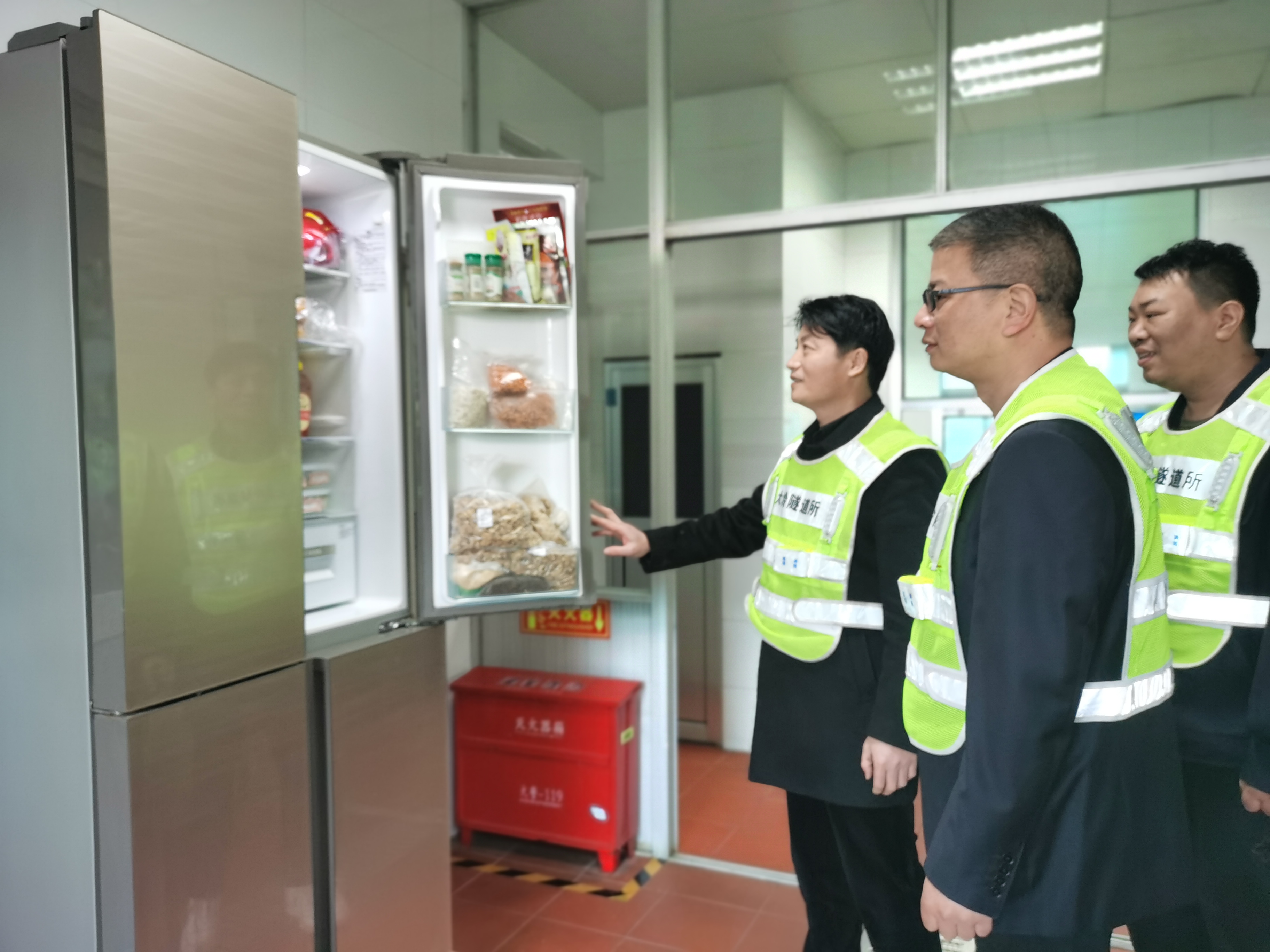 圖為檢查組在食堂檢查