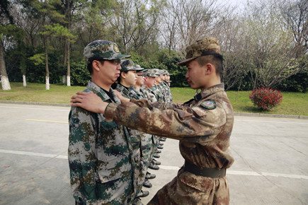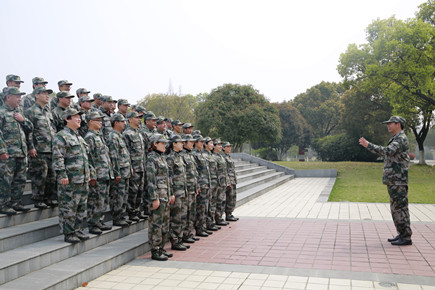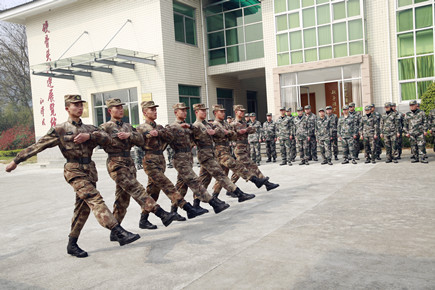 圖為黨員干部在進行隊列訓練