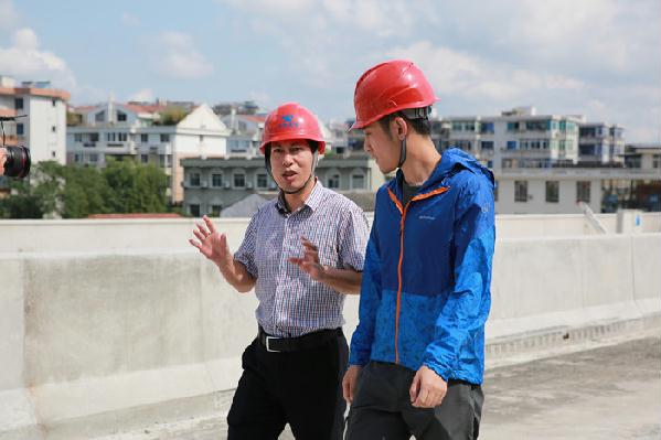 公司總工程師江輝督查內環路(黃巖段)項目文明施工情況