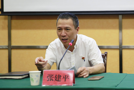 圖為集團(tuán)黨委副書(shū)記、總經(jīng)理張建平傳達(dá)王昌榮書(shū)記講話精神