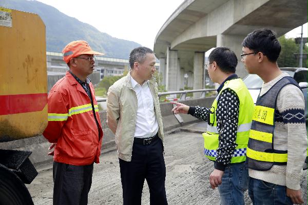 10月30日上午,集團副董事長、總經理張建平分別到黃土嶺隧道整治和攻堅養護施工現場和股權收購點檢查指導。