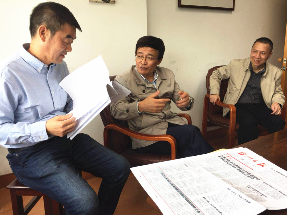 圖為市國資委主任徐豪和集團總經理張建平一起走訪市國稅局股東單位