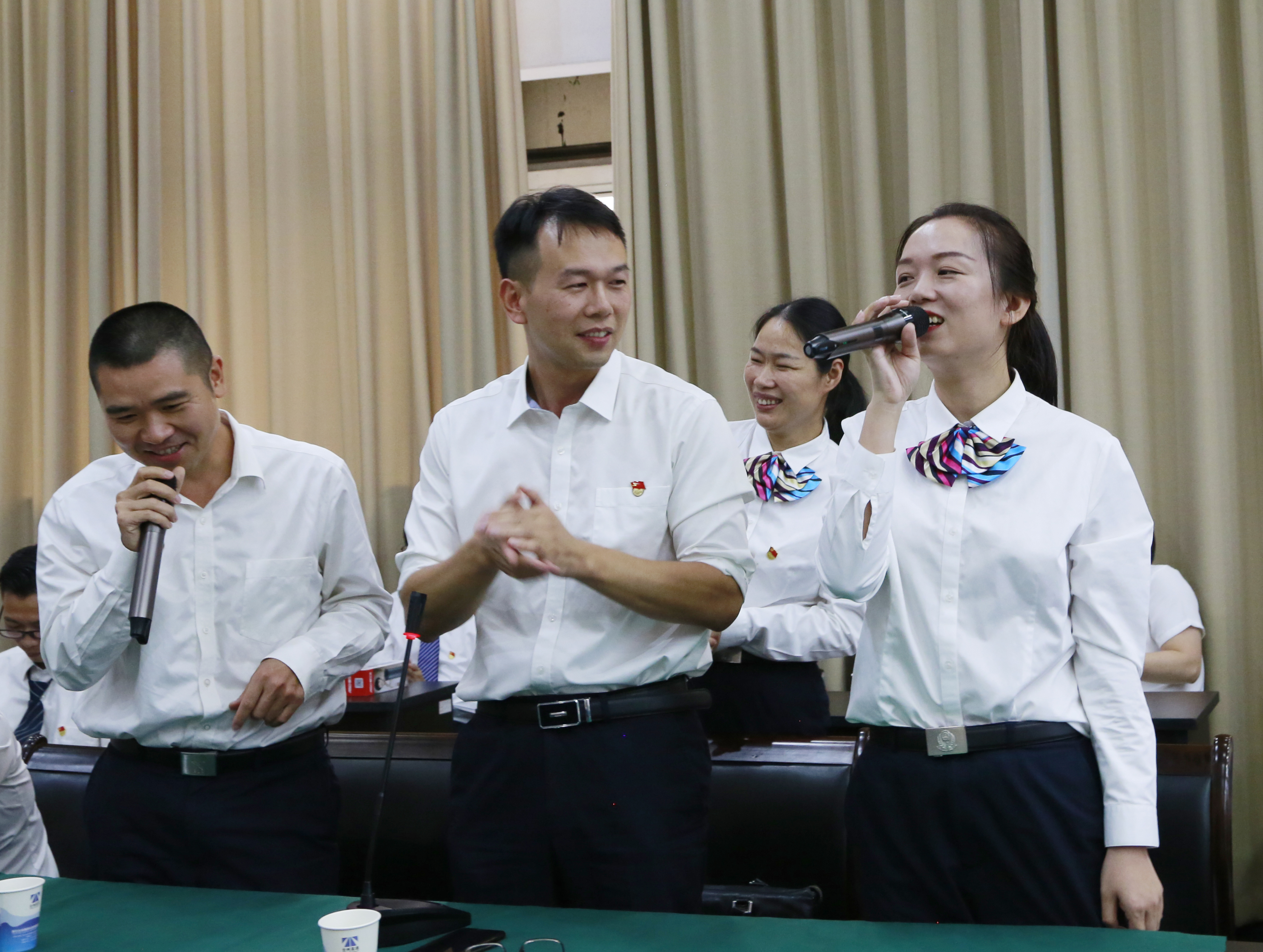 “我和我的祖國,一刻也不能分割......”搶答環(huán)節(jié)中,回答錯誤的支部齊齊起立,表演了一段經(jīng)典紅歌。在輕松的氛圍中走進(jìn)黨章黨規(guī)、十九大精神知識,深入學(xué)習(xí)習(xí)近平新時代中國特色社會主義思想,既有“意義”又有“意思”,既有“氛圍”又有“格調(diào)”。