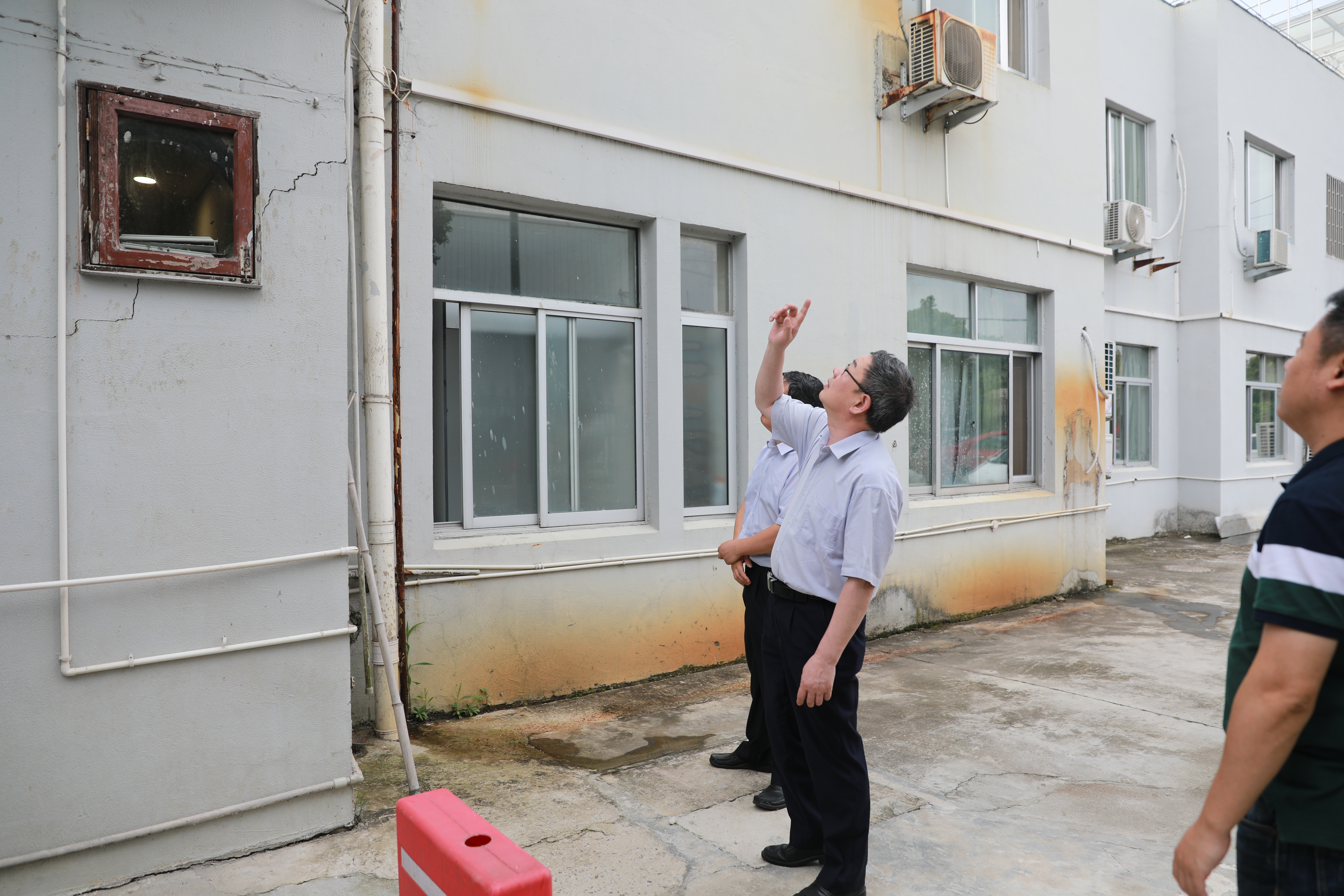 圖為陳文波查看墻體開裂情況