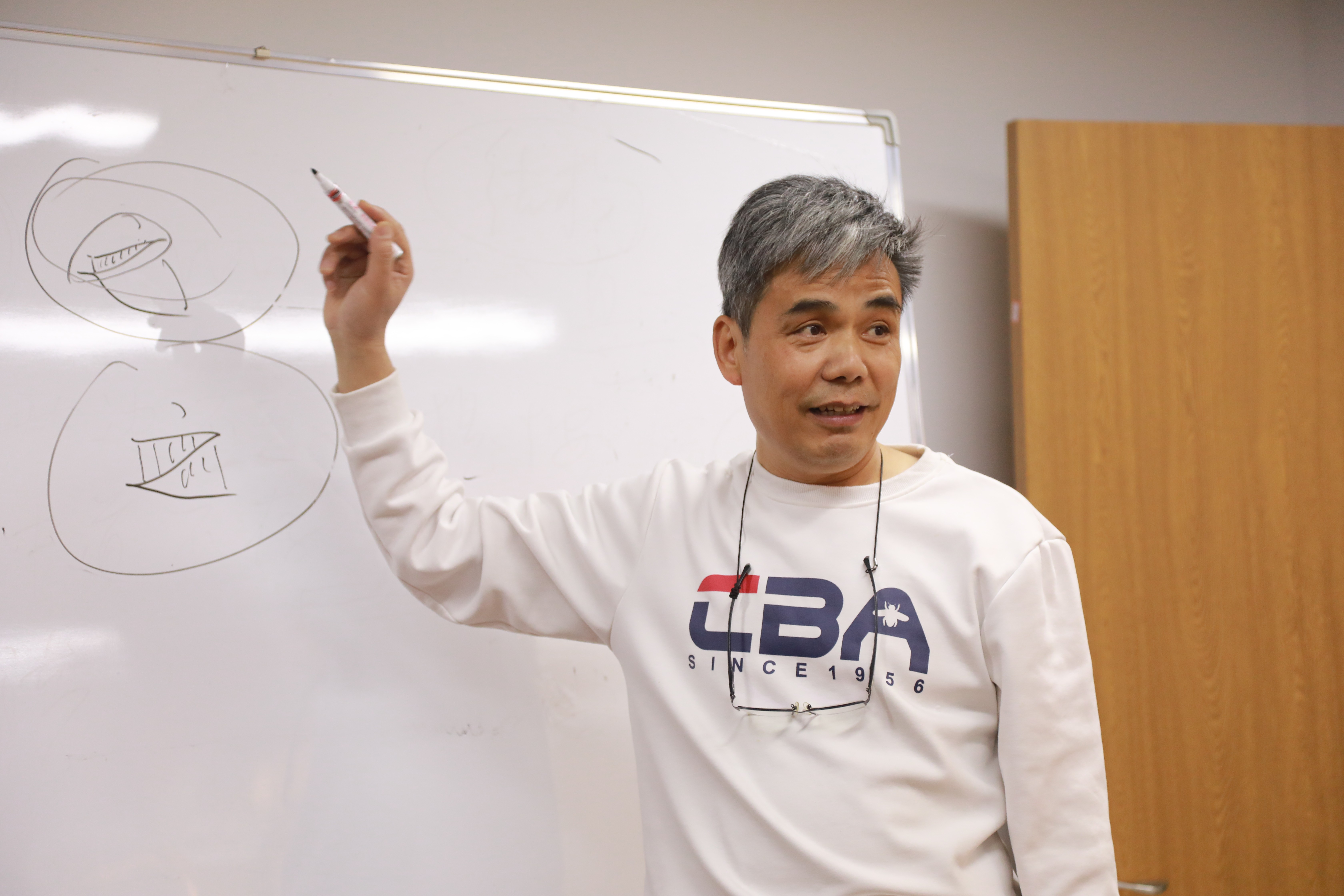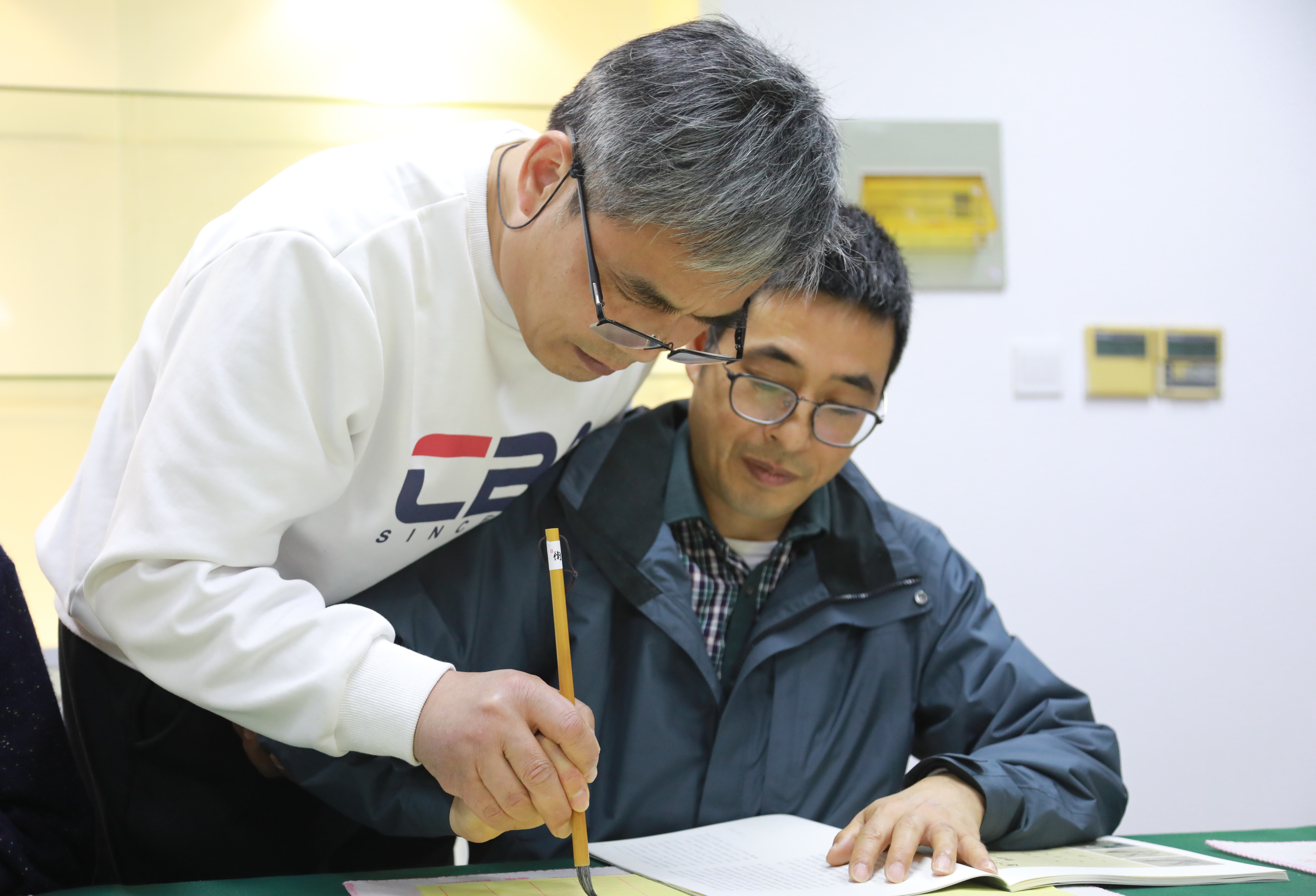 4月13日晚上,公司20樓書法培訓班上,書法興趣小組成員濟濟一堂,一個個正襟危坐,手執毛筆,在一張張書法訓練紙上認真地劃著線條,邊上專業書法培訓教師陳士春一個個輪流手把手教學,幫助大家感受毛筆的運力技巧、筆尖鋪毫要點及筆尖和紙之間的觸感。培訓現場氣氛濃厚,老師用心講課,既有理論解讀,又有實踐指導,學員們用心領悟,認真練習,現場呈現出教學相長的良好氛圍。