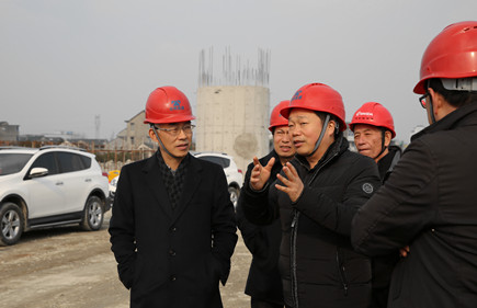圖為董事長(zhǎng)謝文君督查內(nèi)環(huán)北路(江口段)工地