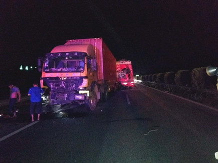 圖為被撞壞的ETC設備 當晚事故接連不斷。晚上22點40分,臺州收費所ETC進口處,一輛大客車行李車門撞歪顯示屏,同時也撞壞了一只抓拍攝像頭,造成了較大的路產損失,但是當班員工都正在路面上施救,施救中心領導統籌部署,通知兩位在所非當班人員赴崗上班,緊急出動,發揮連續作戰精神,進行及時處理。 當以上事故處理完畢,施救人員正準備往回趕的時候,當晚23點10分左右,四輛大貨車在寧向1667K+300M處連環追尾,其中一輛紅色大貨車車頭嚴重變形并且不斷向外漏油。現場極不安全,情況危急,施救中心員工馬不停蹄,又一次拉響了救援車的警報,為了爭取時間,甚至通知了另外地點待崗的人員火速趕來,以便能及早處理。此時,施救中心當班人員已經全體出動,全部戰斗在路上。 王凱