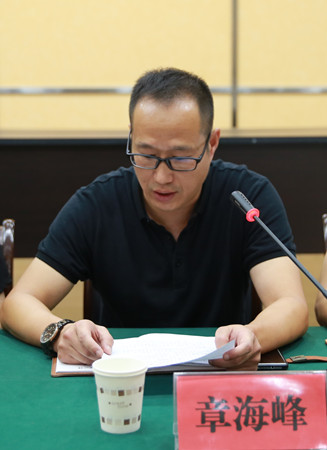 圖為集團新任副總經理章海峰作表態發言