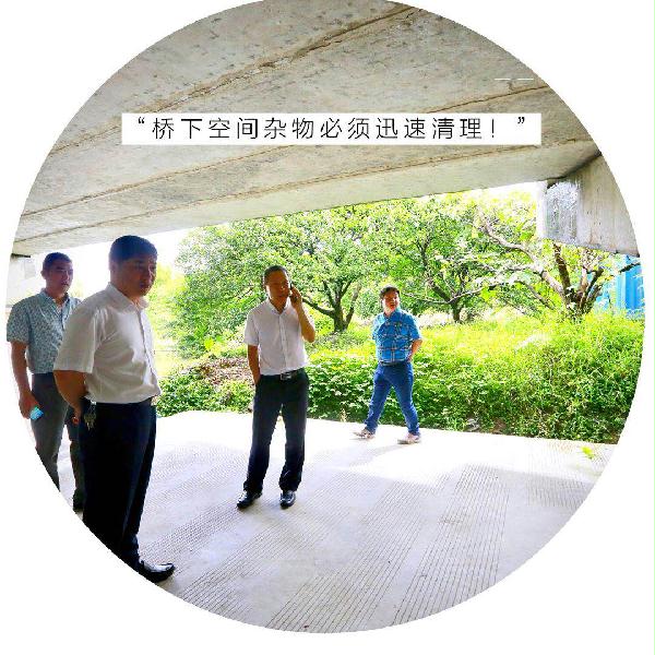 下洋塢橋,看到當地百姓在橋下空間新堆砌的雜物,張建平馬上電話給當地村長,要求立即處理。