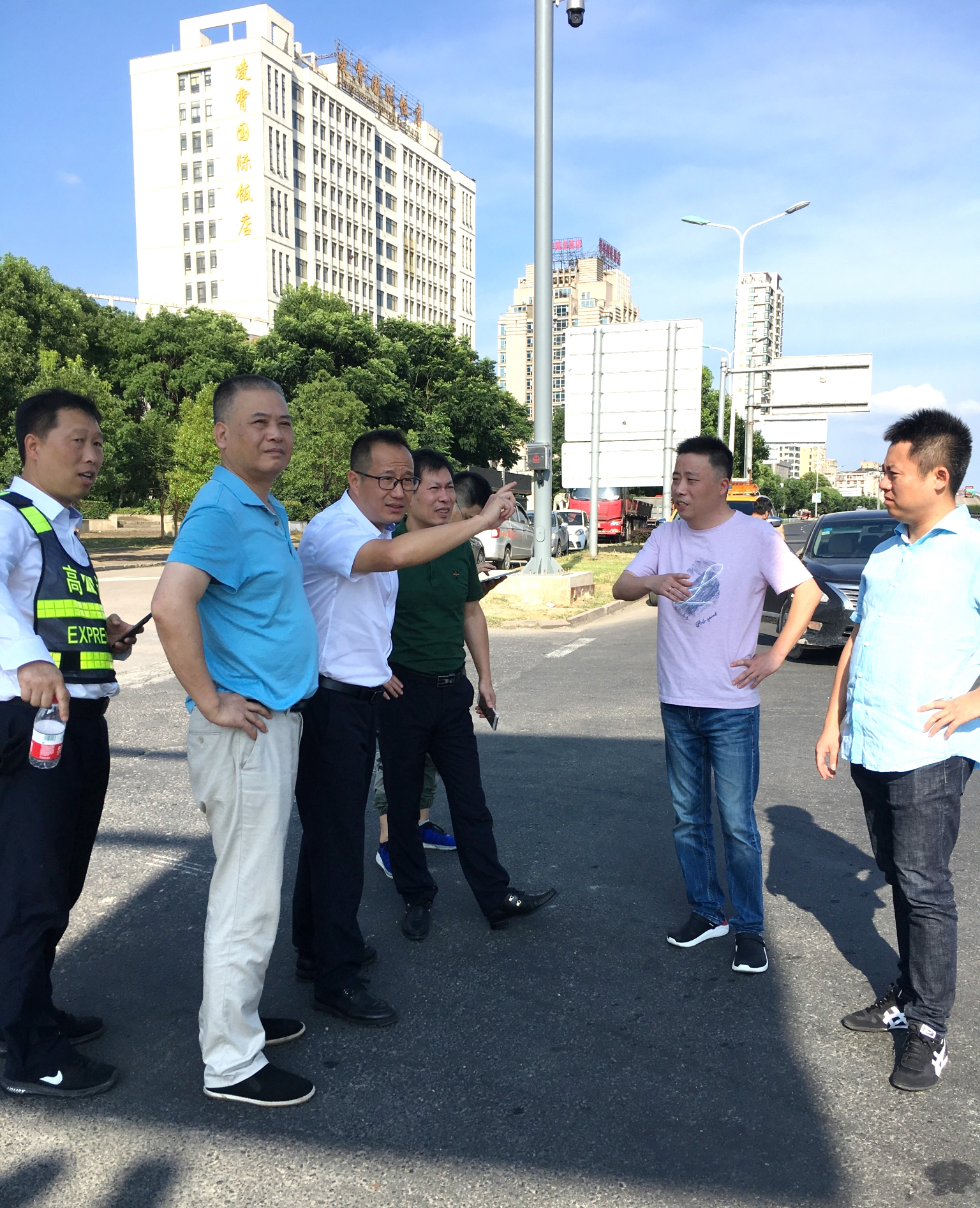 集團副總經理章海峰一行現場踏勘收費站地磅選址 |