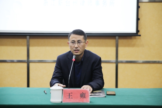 圖為王雍主持培訓會 本次培訓會邀請了浙江新臺州律師事務所律師程龍為大家授課。程龍結(jié)合實際案例對最新的九民紀要進行解讀,并講解了有關(guān)集團提供擔保、股東代表訴訟、表決權(quán)能否受限、借款合同等相關(guān)法律知識,還對可能存在的的風險,及可能引發(fā)的民事責任、行政責任和刑事責任等進行相應的介紹。