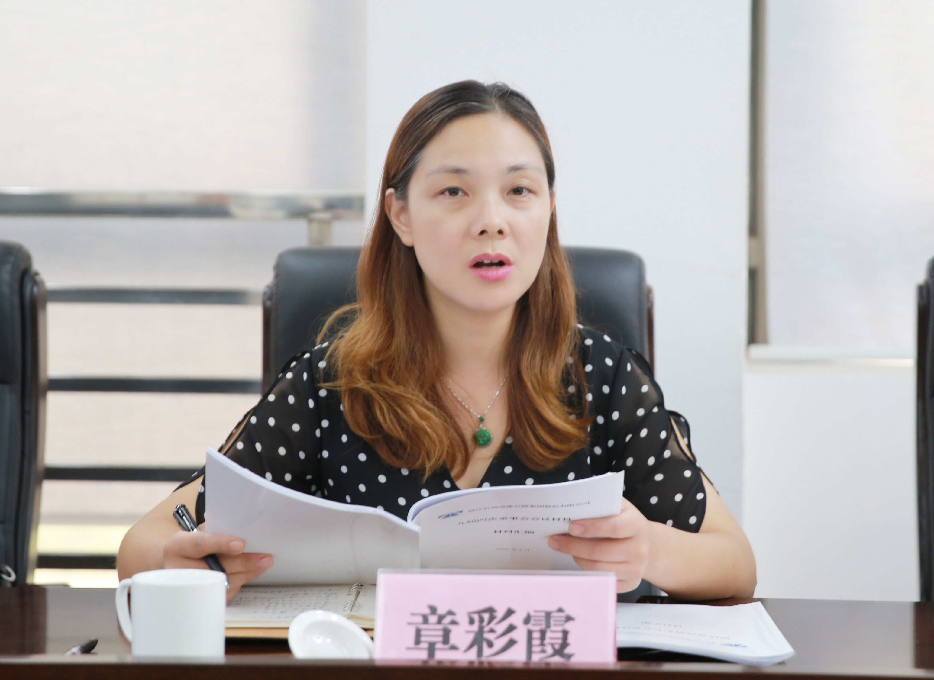 圖為公司總會計師章彩霞宣讀《2019年度財務決算及2020年度財務預算報告》