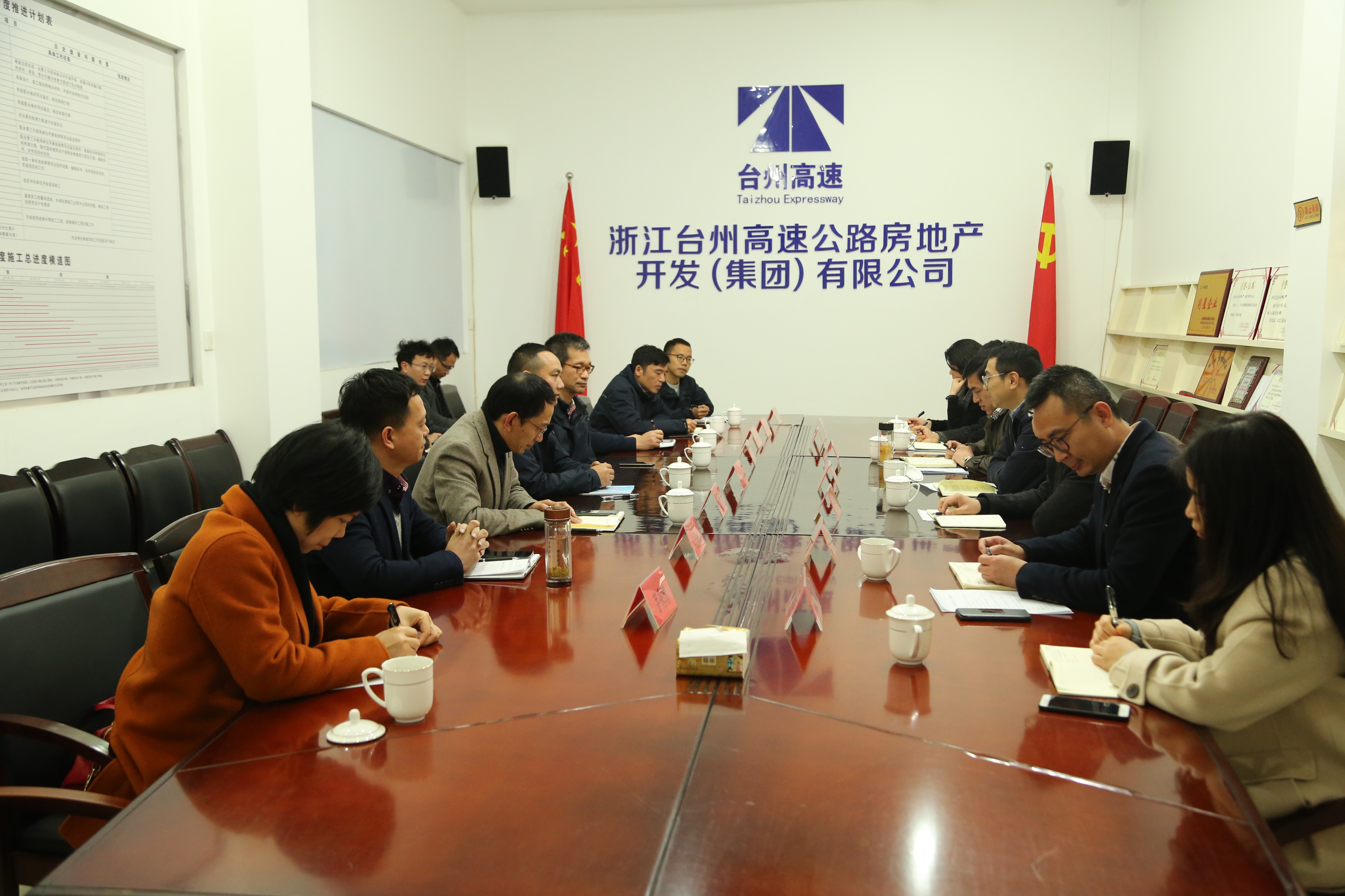 32日下午,臺州市椒江城市發展投資集團有限公司董事長洪杰帶領臺州市椒江城建置業有限公司骨干到浙江臺州高速公路房地產開發有限公司交流學習。臺州高速集團黨委委員、副總經理羅小將以及高速房產集團領導班子熱情接待了來訪的一行。