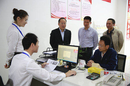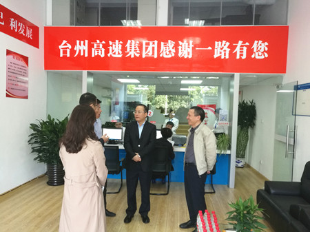 圖為市委常委、常務(wù)副市長董貴波到臺(tái)州高速股權(quán)椒江收購點(diǎn)調(diào)研