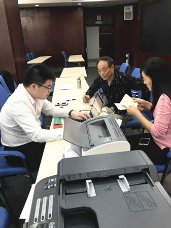 但是,在工作的時候,小李讓我們見識到了“騰飛”的效果。流動點只設(shè)一臺筆記本電腦,線上操作都?xì)w他,在大溪鎮(zhèn)政府,來的股東有百十號,流動小組包括駕駛員何杰靚迅速開展了流水作業(yè)。此時此刻,小李那一雙肥白的大手在小巧的鍵盤上十指翻飛,靈活敏捷,操作如行云流水,打印機刷刷地響,不停飛出一份份協(xié)議,傳到下一個工作人員這里。這才知道,每一個人的名字都是名副其實的,“騰飛”的含義是在這里體現(xiàn)的呀。