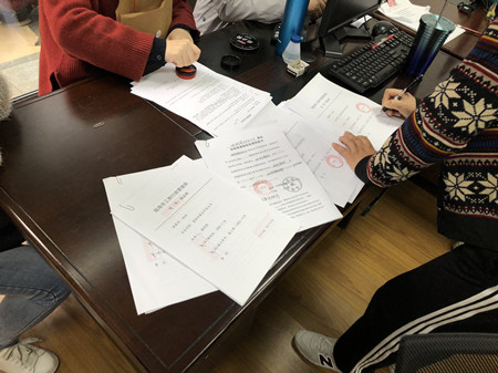 圖為法人股轉讓代表現場蓋公章
