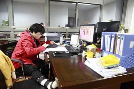 圖為股權投資部李茜茜帶傷工作現(xiàn)場 “每天,我們會第一時間審核各收購點上報的資料,如果發(fā)現(xiàn)股東身份證、銀行賬號等信息不準確,我會及時聯(lián)系收購點。”負責股權收購后臺數(shù)據(jù)匹配處理、收購款匯總、股權過戶等工作的李茜茜,對待每個環(huán)節(jié)都十分細致認真,為確保各類數(shù)據(jù)準確無誤,她都要經(jīng)過多番核對,當確定下收購款匯總表時,便及時與財務結算中心對接,不讓任何一環(huán)掉鏈子。 10月21日,腳不慎扭傷而無法行走的李茜茜,考慮到股權收購正處于緊要關頭,工作量大,數(shù)據(jù)處理復雜,人手緊缺等各方因素,她放心不下,堅持帶傷上崗,并主動要求家人到單位照顧日常生活,集團辦公室專門調(diào)出休息室供其臨時使用。 “我們很理解支持女兒的工作,也很感謝臺州高速對我們的關懷,希望她盡心盡力做好工作。”李茜茜父母自知道女兒受傷那天起,便放下手中事,專門從溫嶺趕來讓女兒安心工作,一家三口助力完成股權收購工作。 據(jù)股權投資部副經(jīng)理楊靜介紹,李茜茜在股權投資部已有兩年,還有股權代理點一線業(yè)務經(jīng)驗,平日好學的她,無論是在業(yè)務專業(yè)知識還是數(shù)據(jù)軟件處理上,都非常嫻熟,在這樣的收購關鍵時期,其他人員無法有效代替她的工作。 自集團股權收購工作開展以來,收購一線繁忙的景象每日在“股權收購點工作小組”微信群里呈現(xiàn),幕后的工作人員也常常加班加點,幾乎沒有正常的上下班時間,受傷的李茜茜同其他人一樣毫無怨言,每日堅持完成各項工作,大家團結一致,確保股權收購順利推進。 陳林偉