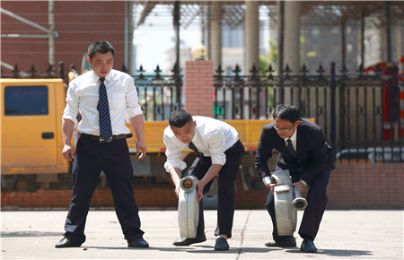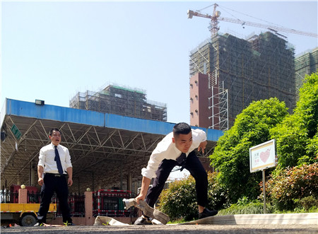該演練模擬了生活樓發(fā)生火災(zāi),員工一發(fā)現(xiàn)火情就立即撥打了報(bào)警電話。參加演練人員聽(tīng)到警報(bào)聲后,迅速拿起打濕的毛巾捂住口鼻,手扶墻體或樓梯扶手,俯身低姿從三樓或二樓,向安全通道有序撤離。全體人員不一會(huì)就疏散到了安全地帶,同時(shí)連接好消防水帶,迅速跑至火源附近,對(duì)準(zhǔn)火源有效滅火。