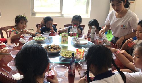 車內(nèi)人員陸續(xù)在外廣場下車,孩子們個個滿頭大汗,施救人員郭志榮和王凱在場維持秩序,當班班長馬德偵引導出口車輛避開這群學生。在整裝并清點人數(shù)后,何先林帶領(lǐng)大家安全通過外廣場,楊雅芬領(lǐng)著這些小客人到食堂休息,并給每位小朋友分發(fā)了酸奶。由于臨近午飯時間,得知調(diào)度車輛從溫州出發(fā)起碼還要1個半小時才能到達,所長王小勇馬上安排食堂給孩子們準備午飯。清炒菜花、肉片大白菜、紅燒魚塊,飯菜雖然簡單,但孩子們個個吃得津津有味。