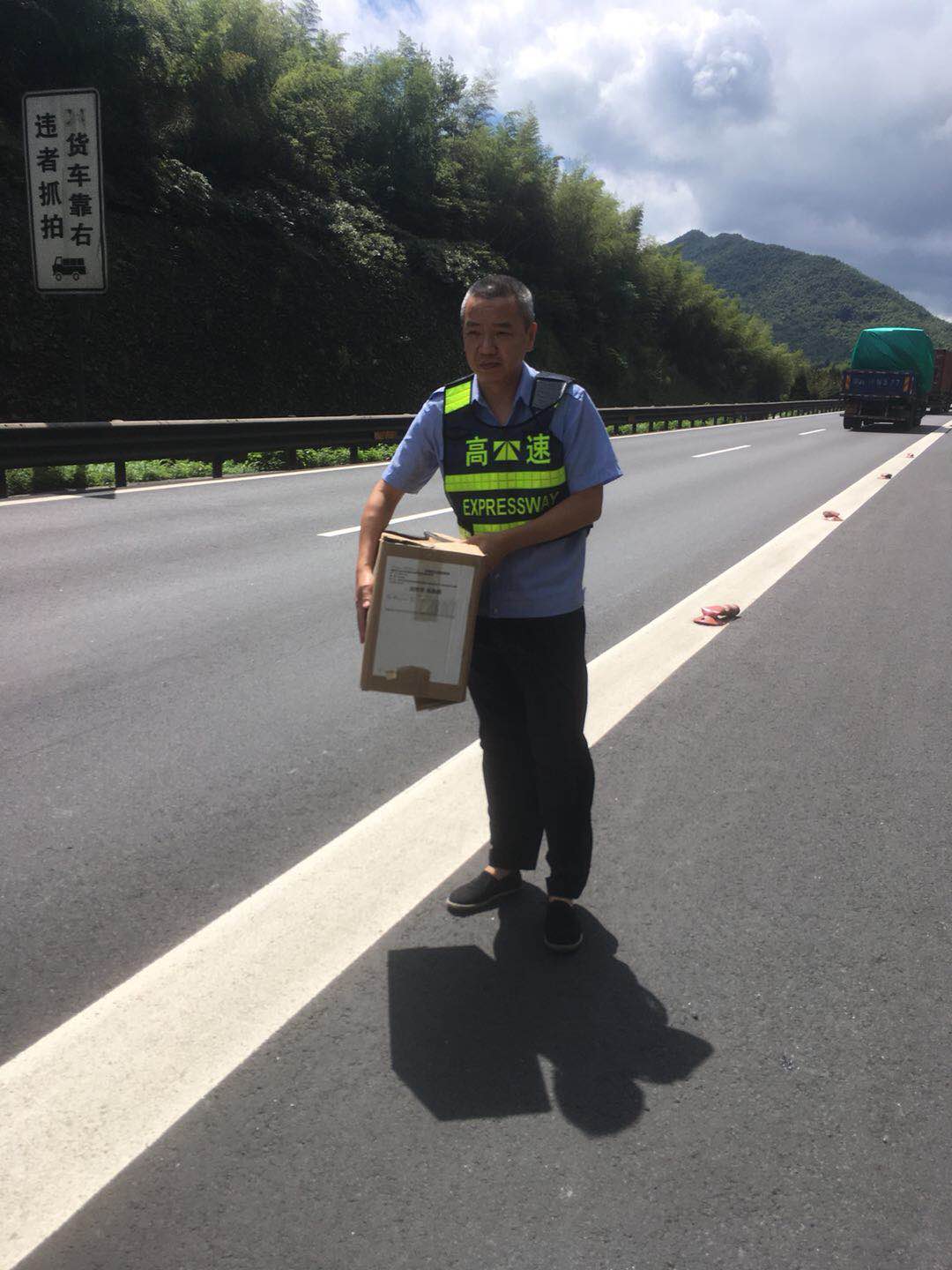 快遞車高速路上不慎丟包裹 值勤隊多方聯(lián)系歸還原主