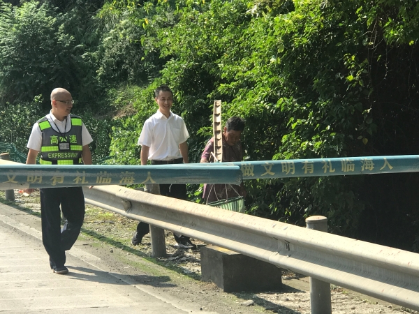 老人硬上高速,工作人員耐心勸返 |
