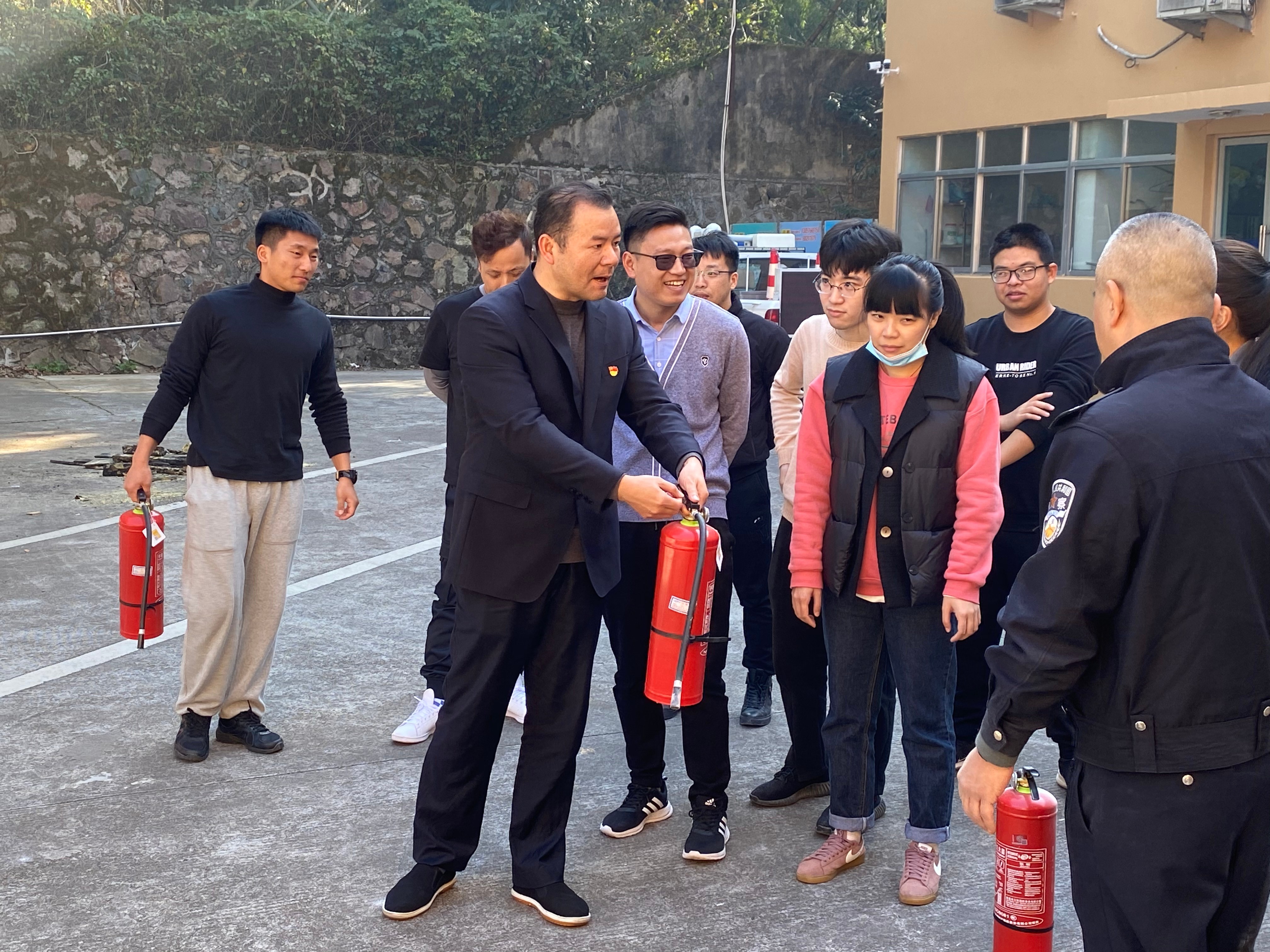 “左手提滅火器,右手拔插銷,要對準火焰根部進行噴射,人一定要站在上風(fēng)口,手千萬不要擋在噴頭前……”