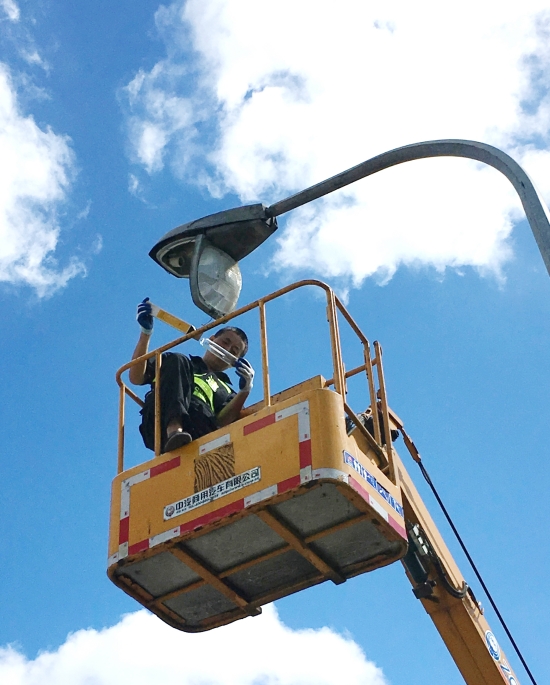“我動作快而且都已經在上面了,換來換去又要浪費不少時間,早點修好早點恢復通車。”當完成第一盞路燈,大家都勸他下來再換個人時,被他婉拒了......