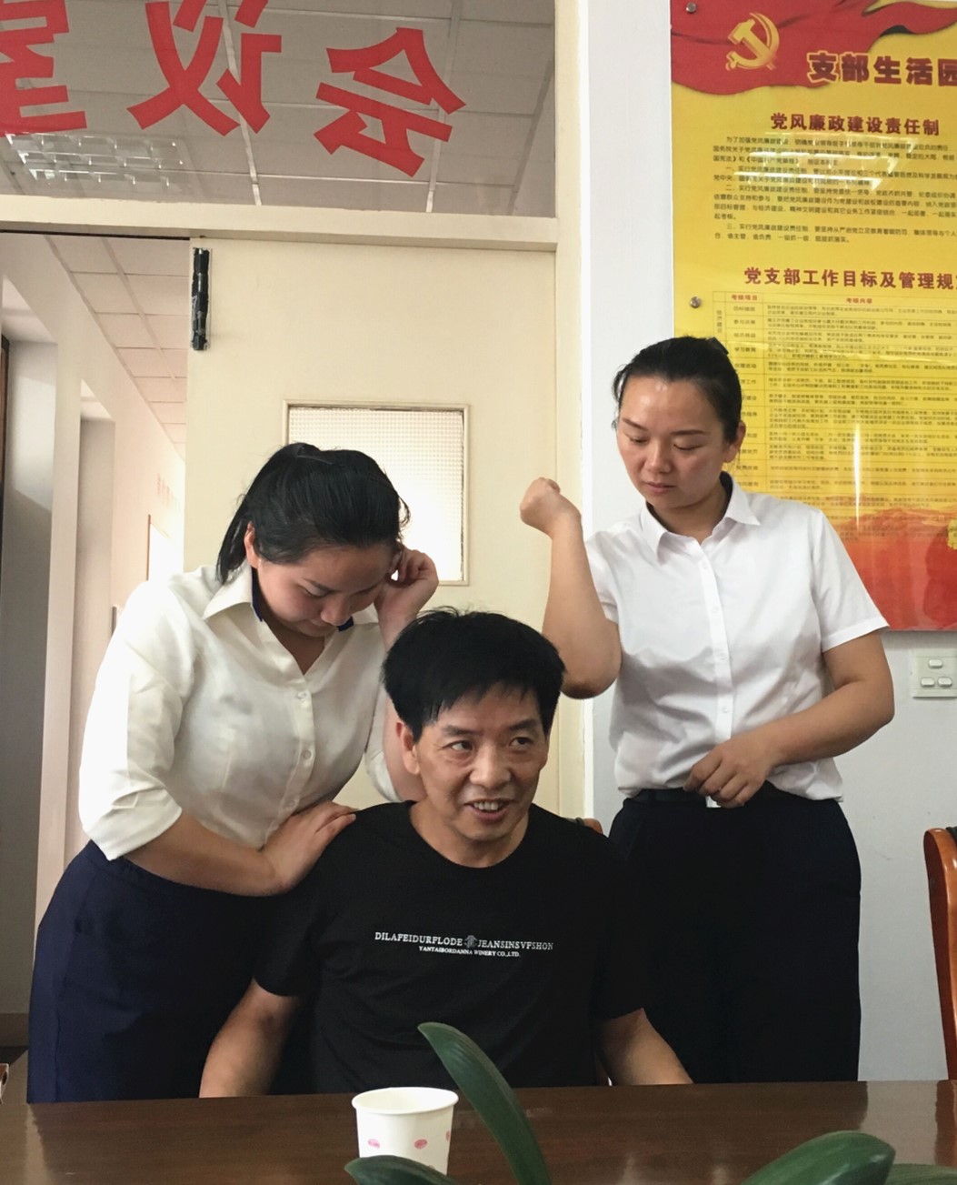 課堂中,一位老師為大家講解了“什么是頸椎病”、“頸椎的重要性”、“頸椎病的危害”等有關健康知識,另一位老師邀請現場人員做示范,用專業手法演示如何緩解頸椎亞健康狀態。 在老師的理論講解和親手示范下,在場人員分成兩組,現學現練,一組人用所學手法演示操作,另一組人坐著感受,老師在旁一一指點不足之處,然后兩組人員互換,交替學習。 此次健康講座不僅僅是紙上談兵,更讓每位員工親自練習操作手法,為今后在做好文明服務收費工作中,如何減緩頸椎疲勞提供了方法。 徐蘇蘇