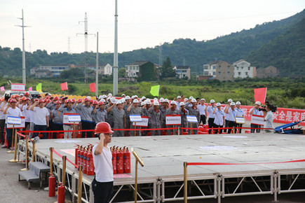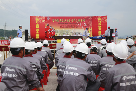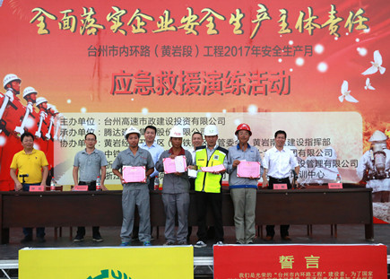 集團總工程師江輝,安全總監項同富,騰達建設集團總經理楊九如出席活動,黃巖東區、南區建設指揮部相關人員,內環路(黃巖段)工程施工單位項目領導、專職安全員,市政公司全體員工參加活動。